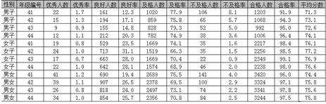2017年湖北經濟學院《國家學生(shēng)體(tǐ)質健康标準》統計表