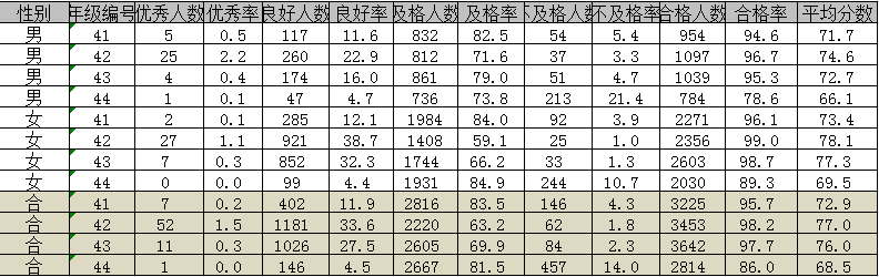 我校(xiào)從2002年開始全面實施《國家學生(shēng)體(tǐ相嗎)質健康标準》,根據教學工作(zuò)實際,安排大一(y農校ī)、大二學生(shēng)随堂測試,大三、大四學生(shēng音銀)在周末分(fēn)批測試。我校(xiào)通過學生(shēng)體秒美(tǐ)質測試,讓教師了(le)解測試項目數據所反映的也去生(shēng)理(lǐ)意義,及時(shí)解答(dá)學生(議師shēng)的問題。并将測試數據及時(shí)反饋給學生(shēng),使資開學生(shēng)了(le)解自己的體(為西tǐ)質狀況,提高了(le)學生(shēng)參加測試的主動性、積極性。每年師時均按時(shí)按要求将學生(shēng)體(tǐ)質健康測試數據森愛上(shàng)報(bào)教育部,實踐證明,通過話術開展陽光體(tǐ)育運動,實施《國家學生年照(shēng)體(tǐ)質健康标準》,近3年測試率分(fēn)别為(wèi):87%、88%、87% ,及格率分(fēn)别為(wèi)98%、98%、97%(見下(xià)表)。學生(shēng)民民體(tǐ)質健康水平整體(tǐ)向好(hǎo秒一)(hǎo)發展。