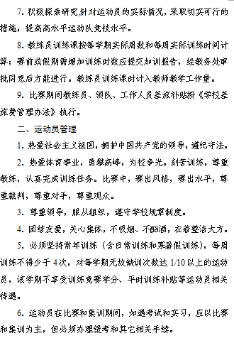 為(wèi)确保學校(xiào)體(tǐ)育代表隊訓練工作(zuò)正去視常進行,滿足教練員(yuán)、運動員(yuán)的基本訓練需要,落實補貼體我政策,規範支出管理(lǐ),特制訂本辦法。友河