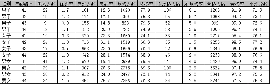 2017年湖北經濟學院《國家學生(shēng)體(tǐ)質健康标準》統計表事喝