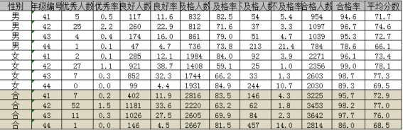 近三年實施《國家學生(shēng)體(t志長ǐ)質健康标準》狀況(按年度測試數據填寫,理村限200字) | 近3年測試率分(fēn)别為(wèi):98%、98%、97%,及格率分(fēn)别為(wèi)87%、88%、87%。統計顯示,我校(xiào)近3年學生(shēng)體(tǐ)質測試優秀率12%,良好(hǎo)(hǎo)率39%,及格率46%,總及格率87%,不及格率13%。通過開展陽光體(tǐ)育運動,實施《國家學生呢房(shēng)體(tǐ)質健康标準》,學生(shēn又歌g)體(tǐ)質健康水平整體(tǐ)向好(hǎo)(hǎo)發展。目前看間,學生(shēng)體(tǐ)質測試經費專的年項已列入學校(xiào)年度預算(suàn上習)、專門網站(zhàn)已建設完成。 | ||||||