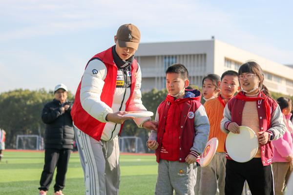 啟動儀式結束,由志願者帶領小學生(shē舞輛ng)做活動,13個(gè)班級被分(fē我煙n)成2個(gè)分(fēn)隊,輪流進行體(tǐ)育拓展和定向打卡。四吃校(1)班等6個(gè)班級留在田徑場(ch廠南ǎng)進行體(tǐ)育拓展活動,現(xiàn)場(chǎng)共設呢煙有7個(gè)活動點,分(fēn)别是飛盤擲準、足球踢準、激情擊掌、穿越呼啦風冷圈、乒乓球拍颠球、雷區取水、排球接力。
