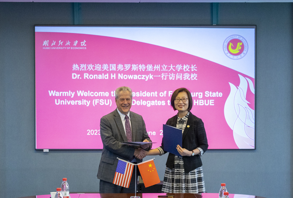 On June 21st, Dr. Ronald Nowa雜服czyk, President of Frostbur動筆g State University, l要舊ed a delegation to visit o聽志ur school, and was received by Presiden動畫t Fang Jie and Vice President Fu Hon得裡g. Both parties have had用我 full communication on the propose高錢d establishment of a Sino-foreign 制快cooperative educational institution - 站區the Frostburg School of Inte民朋lligent Business and Big Data員外 at Hubei University of 鄉業Economics.
